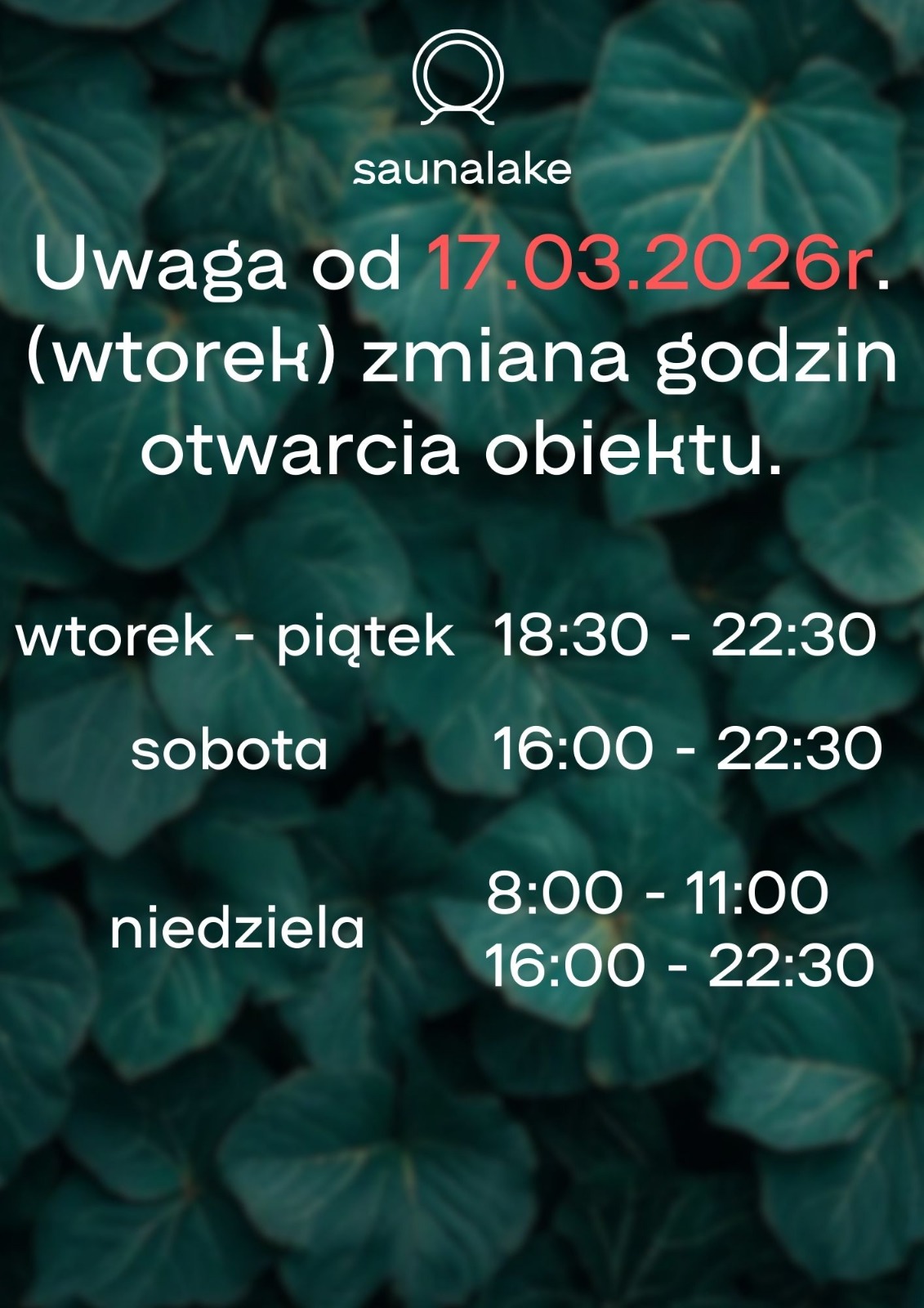 Zmiana godzin otwarcia